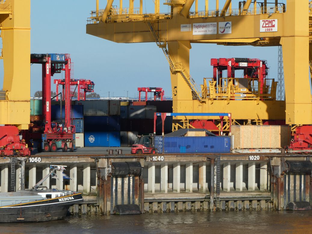 Am Ufer stapeln sich Berge von Containern, zwischen denen wie Ameisen Containertransporter wuseln, alles überragt von Kränen, die sortieren und unzählige Container auf Schiffe schichten. Staunend betrachtet man die Szenerie und wundert sich über das „know how“, das erforderlich ist, um die Container schließlich zum richtigen Ziel zu bringen.