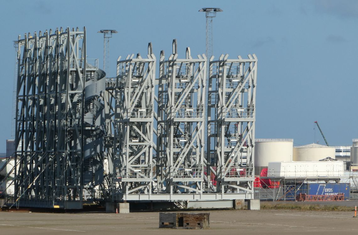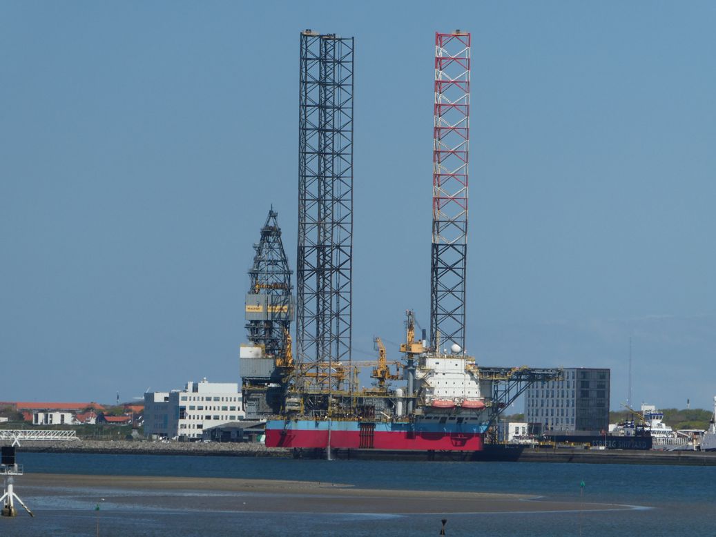Die vier an der Küste stehenden weißen Skulpturen, das neun Meter hohe Monument namens „Der Mensch am Meer“, die überall als Wahrzeichen von Esbjerg beschrieben werden, nehmen wir vom Schiff aus kaum wahr – weit mehr dominieren die Ölplattformen, die hier in den Werften gebaut und überarbeitet werden. Von einem alten Stadtzentrum ist vom Schiff aus wenig zu sehen, nur der alte Wasserturm aus dem 19. Jahrhundert ragt etwas heraus; es sieht alles mehr nach einer modernen Einkaufsstadt aus.