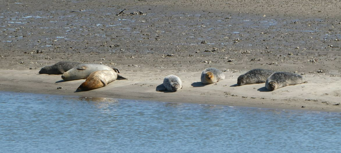 Aus den wenigen Straßen heraus wird der Blick immer wieder auf die Uferstraße, das dahinterliegende Wattenmeer oder ein Stück Strand, und auf die gegenüberliegende Stadt Esbjerg gelenkt. Irgendwann ist es dann nicht nur das Watt, sondern eine sich auf dem Watt sonnende Gruppe von Robben, die unsere Aufmerksamkeit erregt. Wo hat man sonst schon „in freier Wildbahn“ direkt diese Tiere so nah vor sich?