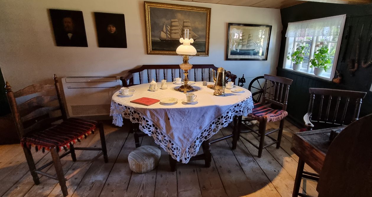 Das Museumsgebäude wurde von den letzten Bewohnern des Hauses dem Dorf als Museum vermacht, die Ausstattung stammt noch weitgehend von ihnen, dazu all das gekommen, was im Dorf zusammengetragen wurde. Die Räume sind relativ klein, an den Wohnbereich schließen sich Stallungen und Scheuer an – die Bewohner lebten vom Fischfang und von der Seefahrt, wie so ziemlich alle auf der sandigen Insel, und für den Eigenbedarf gab es eine begrenzte Viehhaltung.
