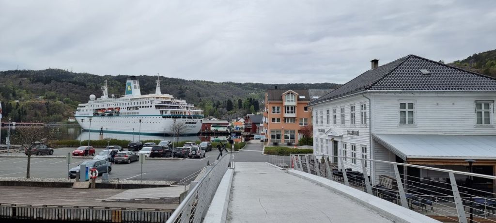 Angekommen im Ort Flekkefjord, der kleinen Ortschaft am Ende des Fjords. In der Zwischenzeit hat es etwas angefangen zu regnen.