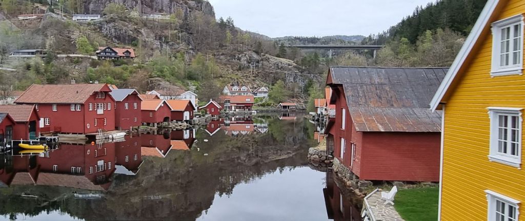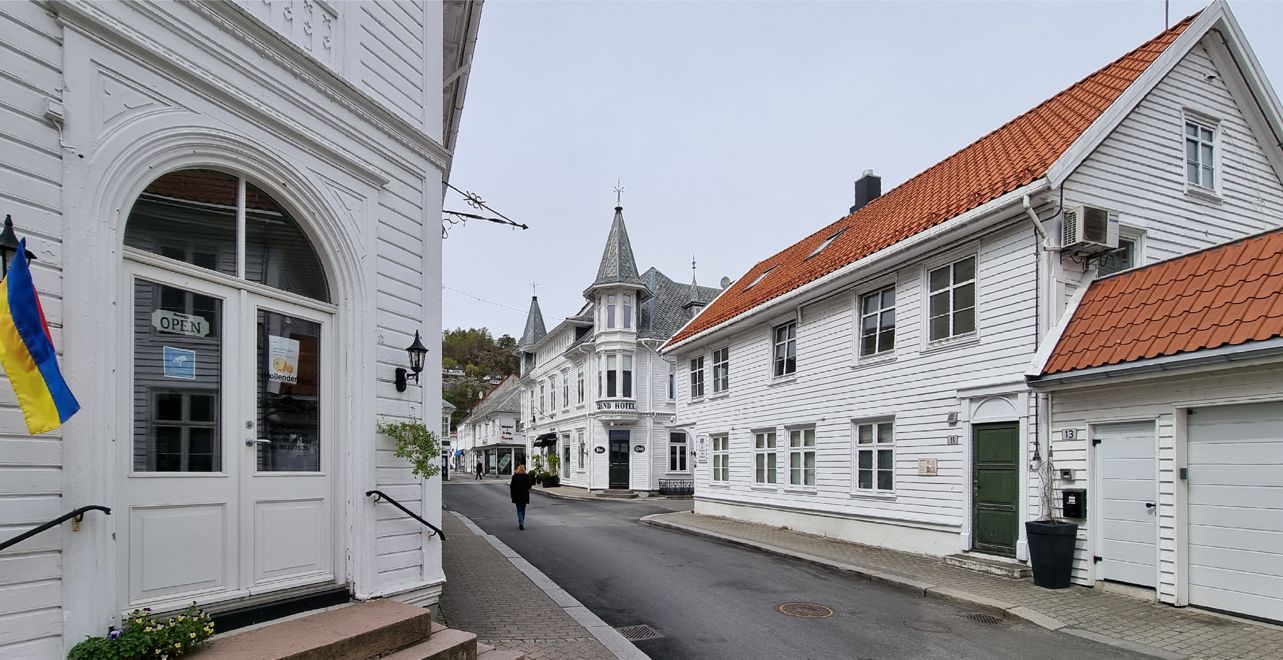 Zurück im Ort Flekkefjord geht es noch auf einen kleinen Spaziergang, vor allem im sogenannten Holländerviertel „Holländerbyen“ mit den weißen Holzhäusern, entstanden im 16. Jahrhundert, als es hier intensiven Handel mit den Holländern gab, vor allem Hummer, Holz und Granit.
