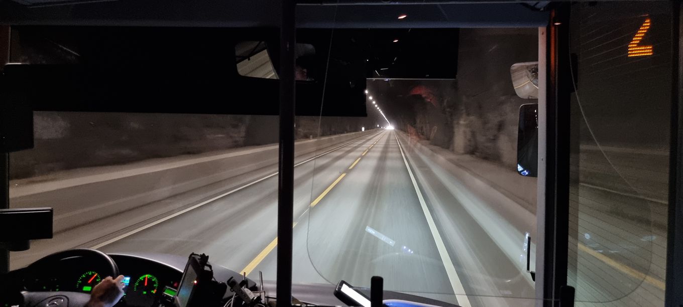 So ein wenig staunen wir schon, als es eine Strecke lang entlang eines kleinen Flusses geht, und wir im Flussbett immer wieder vereiste Schneeschollen zu sehen bekommen. Überraschend oft geht es hinein in Tunnel, die durchaus auch mal mehrere Kilometer lang sind.