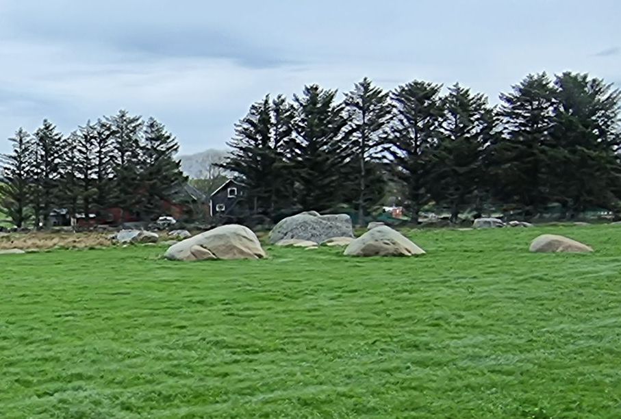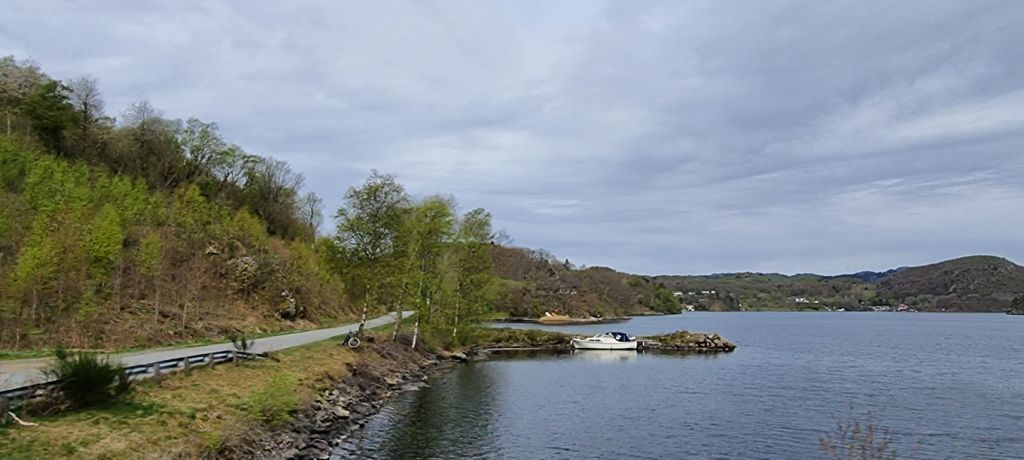 Schnell geht es wieder von den Höhen hinunter und hinein in ein zum Meer hin ziemlich flach abfallendes Gelände mit landwirtschaftlich genutzten Flächen – und schon sind wir angekommen in Borhaug, in einer völlig anderen Küstenlandschaft, in einem kleinen, verschlafenen Fischerort.