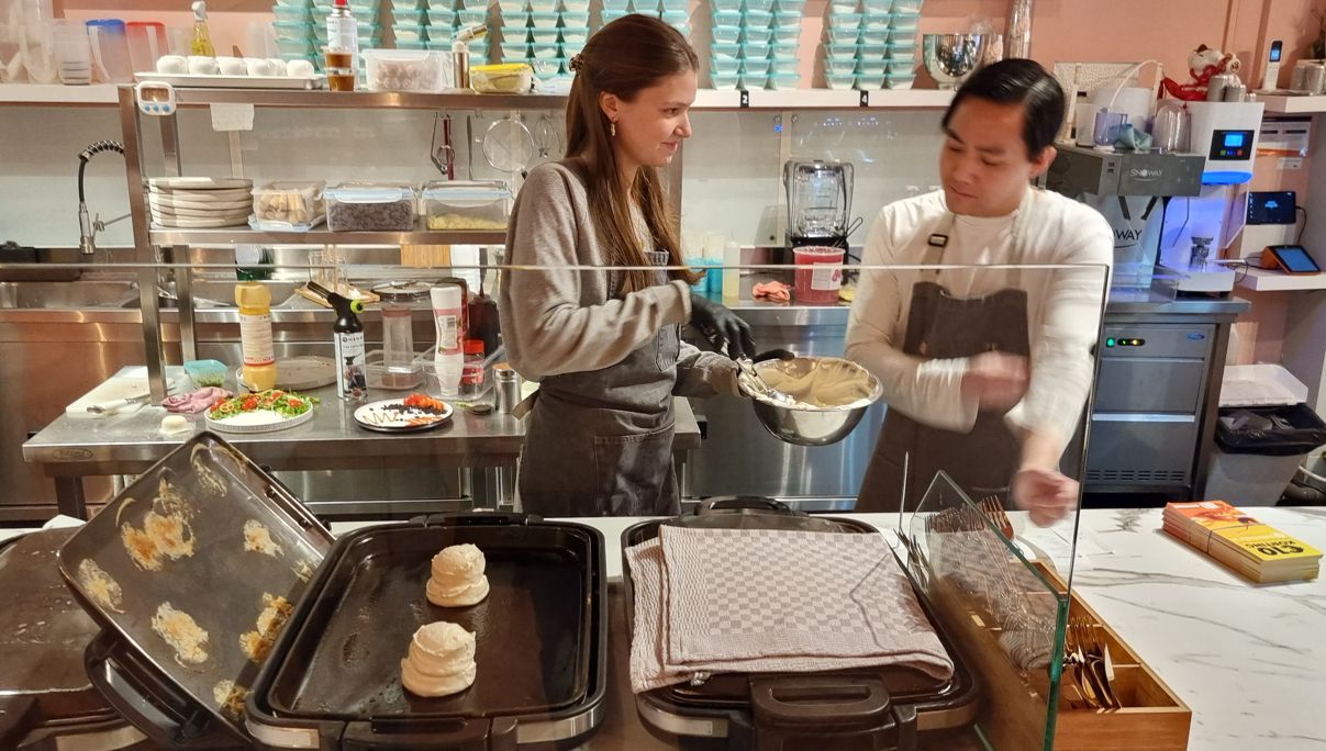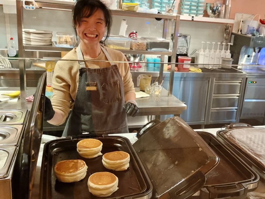Wir entdecken noch etwas anderes, in einer der Nebenstraßen – das Soffle Cafè, ein Minirestaurant, in dem es nur japanische Soffles zum Essen gibt, in allen möglichen Variationen, frisch zubereitet, mit welch Zutaten auch immer. Wir entscheiden uns für ein salziges Soffle und ein süßes Souffle. Der Teig wird für uns angerührt, in Backpfannen im offenen Bereich der Küche gebacken und dann angerichtet. Angenehm locker und leicht, was da auf dem Teller liegt, die salzige Version mit Speck und Salat eher gewöhnungsbedürftig, die süße Version eher so wie erwartet. Lecker, mächtig, nett es einmal probiert zu haben, muss man aber nicht zwingend alle Tage haben …