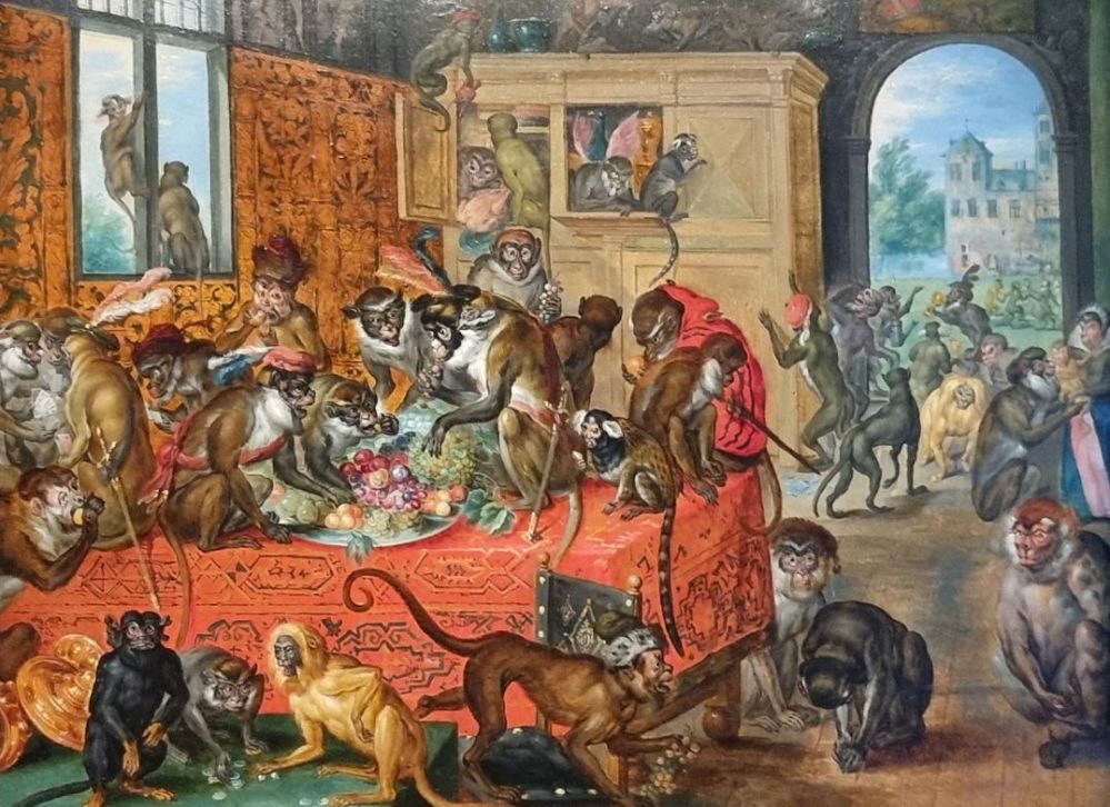 Jan van Dyk mit seinem Selbstportrait und weiteren Kunstwerken, das Gemälde von Jan Brueghel, auf dem Affen ein Festmahl feiern, Jakob Jordans Gemälde Neptun und Amphitrite, der Fischmarkt von Adriaen van Utrecht und Marten Pepijn und vielen mehr.