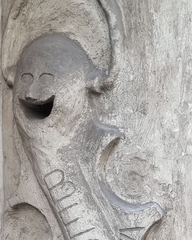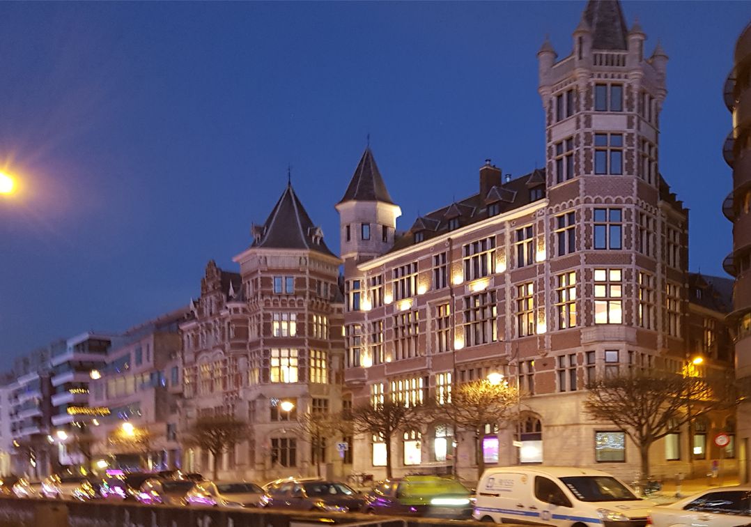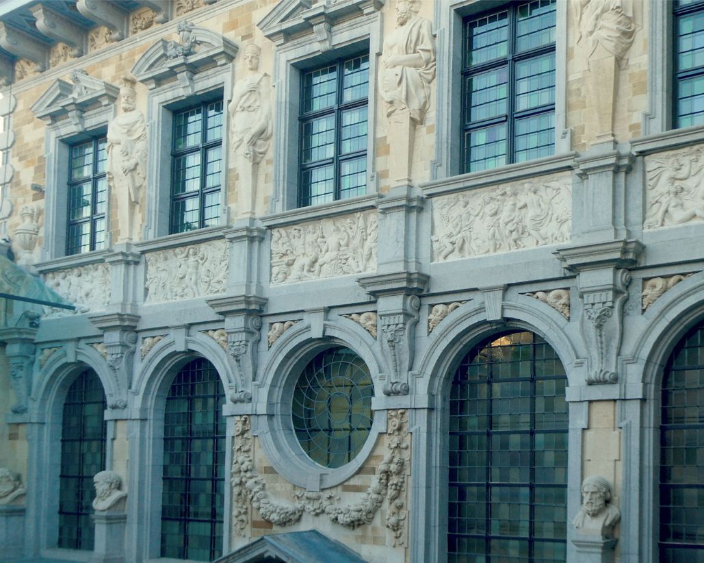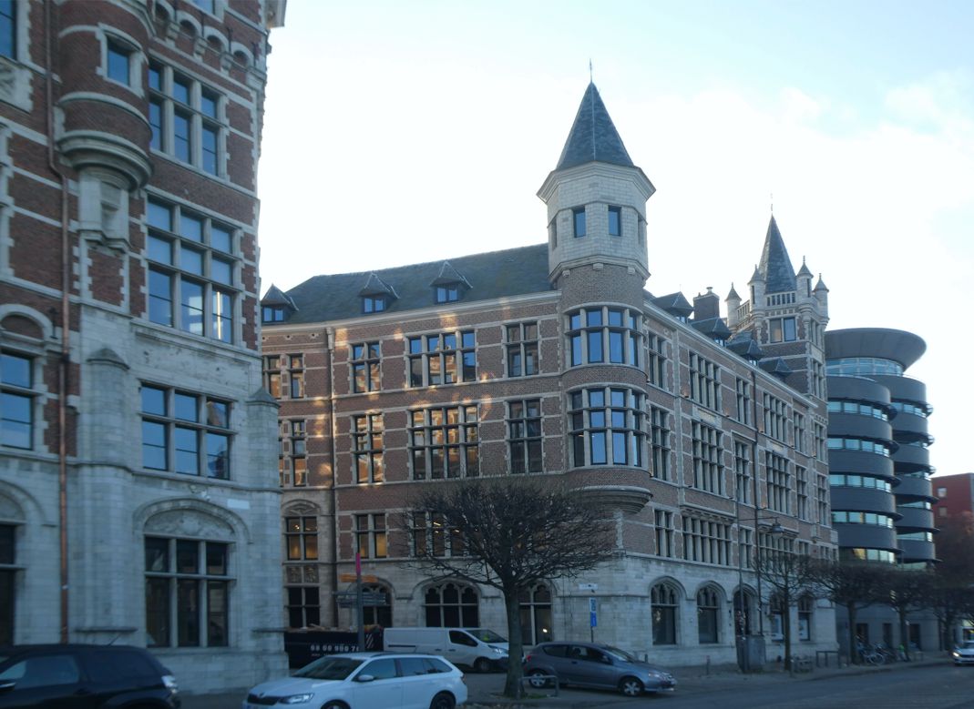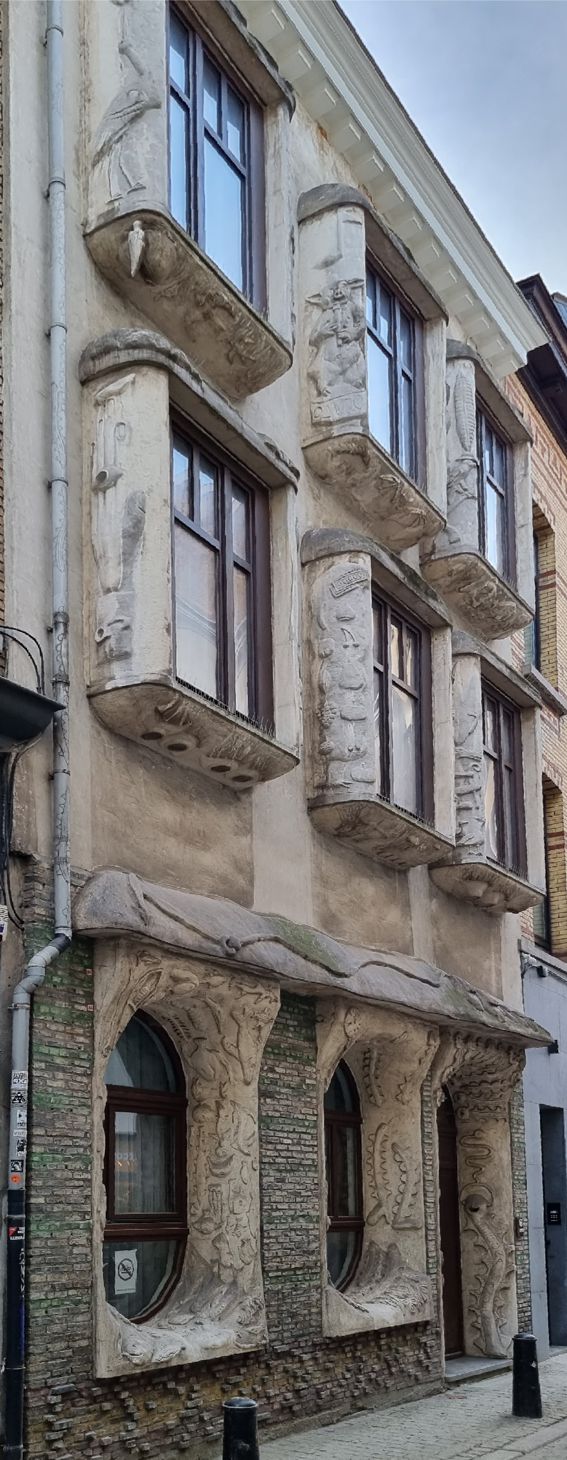 An die für Antwerpen typischen Gründerzeit- und Jugendstilfassaden der Häuser fallen immer wieder höchst ungewöhnliche Gestaltungen auf, die ausschauen als habe sich jemand einen Spaß mit irgendwelchen Stilelementen erlaubt.