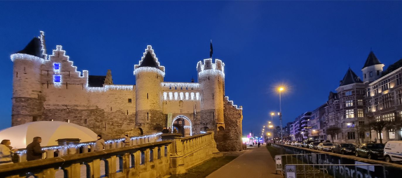 Nach ein paar Monaten sind wir also schon wieder einmal in Antwerpen. Das letzte Mal legten wir mit einem Hochseeschiff, der MS Deutschland hier an, direkt an der Stadt, an der Burg Steen; dieses Mal ist es ein Flusskreuzfahrtschiff, die MS Andrea, und wir liegen fast an derselben Stelle.
