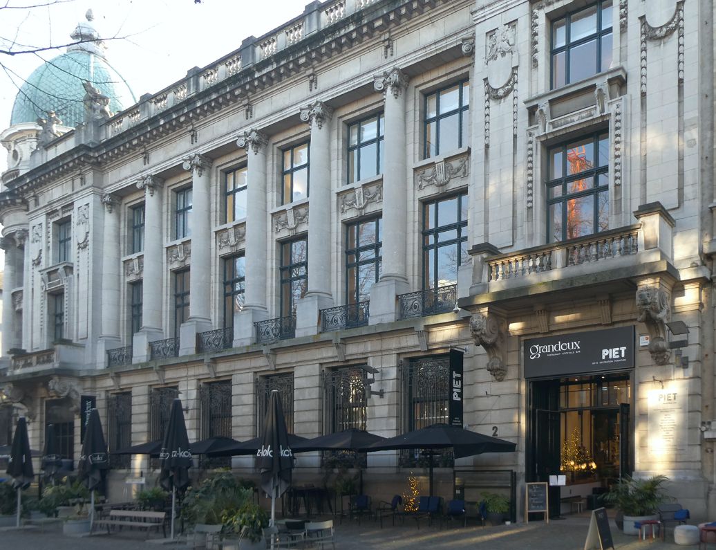 Vorbei geht es am Graanmarkt in Richtung Rubenshaus, das wir uns ansehen wollen. In einem der historischen Gebäude am Platz ist ein stylisch-moderner Shop untergebracht – und für uns ist es wieder einmal Zeit, uns aufzuwärmen. Ein einladendes Entrèe, und wir landen in einem großzügigen, hohen Raum, locker auf Verkauf ausgestattet, das Angebot zwischen Mobiliar, Blumen, Gebrauchsgebenständen für die Küche und Schnickschnack ausgerichtet – und das alles übergehend in eine Restaurantausstattung. Vorne im Ladenbereich noch eher ein Cafè zwischen Verkauf und Blumen, dann das Bistro, schon eher wie ein Restaurant anmutend, schließlich das typische Restaurant immer besser ausgestattet bis hin zum Gormetrestaurant im historischen Turmzimmer. Einfach ungewöhnlich, das Piet grandeux, zusammen mit dem Restaurant Grandeux.
