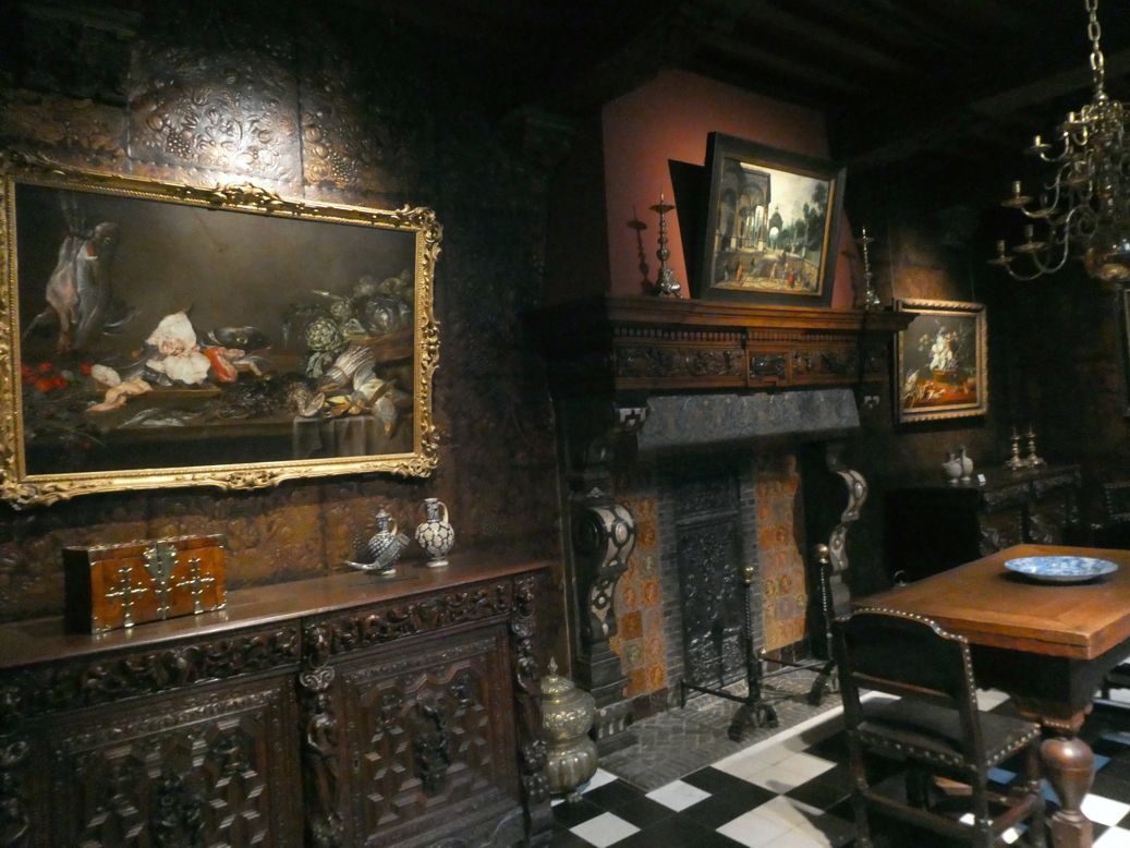 Im Gebäude fallen die aufwendig gestalteten Räumlichkeiten auf, gediegene Vertäfelungen, oft kunstvoll bemalt, Natursteinwände und stilvolle Kamine, überall Steinmetzarbeiten und Stuck, an den Wänden prächtige Tapeten und Delfter Fliesen, in den Räumen noch Mobiliar aus vergangenen Jahrhunderten. Noch mehr sind es die in den Räumen ausgestellten Arbeiten von Rubens selbst wie von einigen seiner Schüler. So ist in einem der Räume eine seiner frühesten Arbeiten zu sehen, Adam und Eva im Paradies, oder in der Speisekammer sein bekanntestes Selbstportrait.