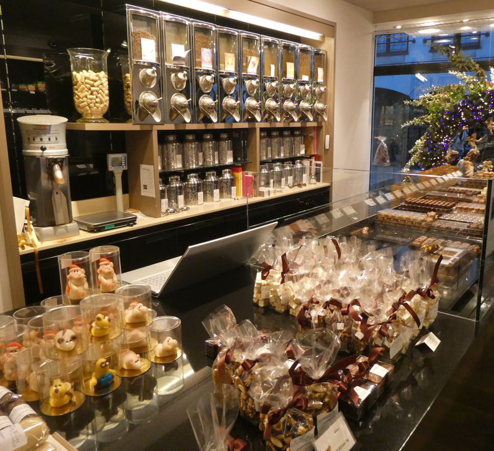 Natürlich geht es in Belgien nicht, ohne im einen oder anderen Pralinenshop etwas zu naschen. In Antwerpen findet man dafür vielfältige Gelegenheiten, nicht die mehr oder weniger edle Massenware, sondern kleine Chocolaterien, die ihre Kreationen anpreisen – und immer sind es durchaus lohnende Verlockungen, in verschiedensten Geschmacksrichtungen. Wie zum Beispiel auf unserer letzten Station, bevor wir zum Schiff zurückkehren, bei Günter Wattè. Da gibt es nicht nur leckere Pralinen, sondern auch selbst gerösteten Kaffee, sortenrein, aus den besten Kaffeeanbaugebieten der Welt. Wir probieren zwei verschiedene, einen aus Guatemala, einen aus Papua, beide höchst unterschiedlich, beide sehr fein.