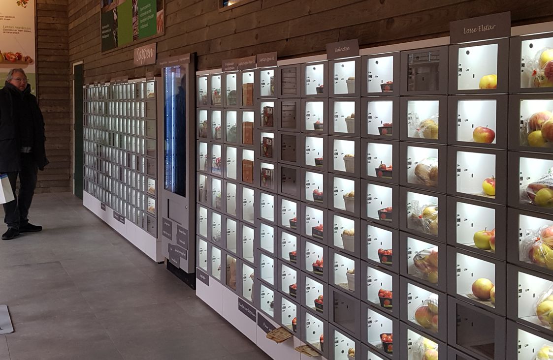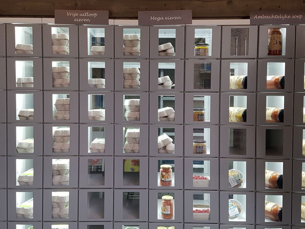 Am Käsestand nebenan gibt es eine Riesenauswahl, erstaunlich günstig, und nicht nur die großen gelben holländischen Räder, sondern eine breite Palette französischer, durchaus namhafter Käse, darunter viele verschiedenste Ziegenkäse, die man bei uns nicht ohne weiteres so findet. Wir können uns nicht zurückhalten, machen einen Großeinkauf – einen Tag wird der Käse in der Schiffskabine wohl durchhalten, vielleicht sogar ein wenig weiter reifen, bis zum Ende der Reise. Interessant auch der Hofladen gleich in der Nähe – hier muss man für den Einkauf nicht raus aufs Land fahren, hier kommt das, was auf dem Hof erzeugt wird, in den Automaten-Hofladen in der Stadt.