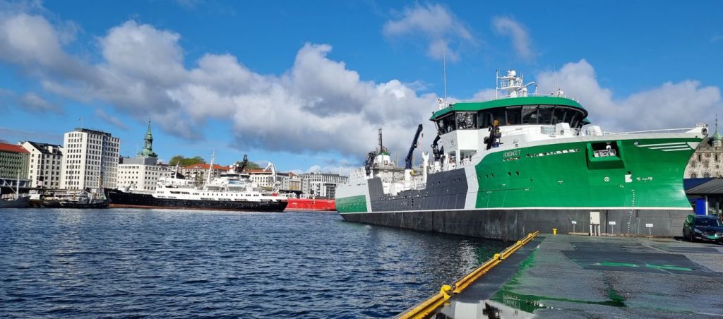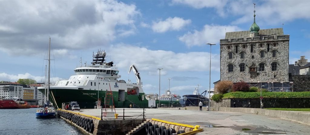 Die im weitläufigen Hafen liegenden recht kleinen Kreuzfahrtschiffe von Havila und Viking fallen neben den riesigen Fischtrawlern, die die Hafenanlagen geradezu füllen, kaum auf. Angelegt wird in Bergen wie immer bei der Festung Bergenhus.