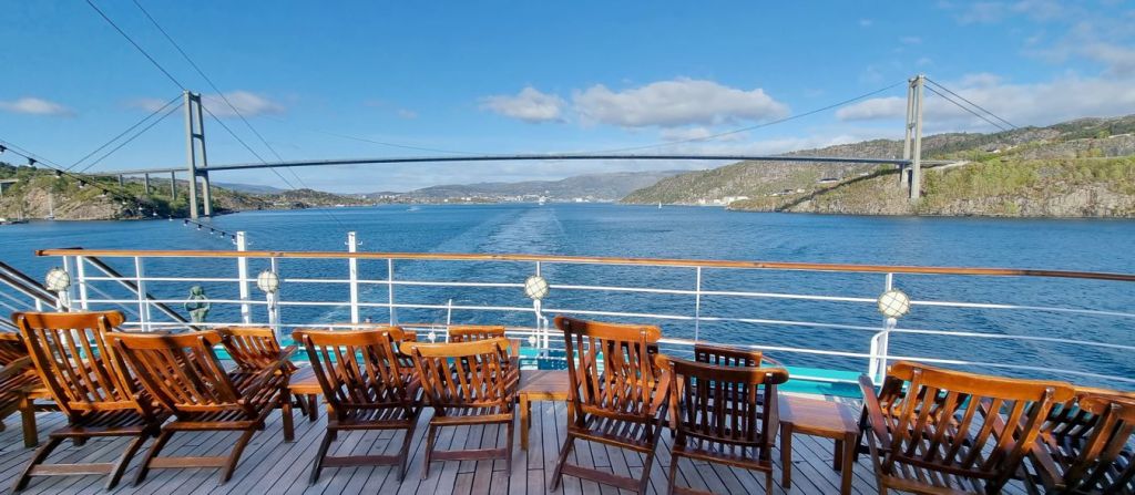 Gerade fährt noch die MS Lofoten, bis vor kurzem ältestes Schiff der Hurtigruten, nunmehr das Schulungsschiff der maritimen Hochschule der Stiftung Sørlandet, in den Hafen ein – ein Schiffsklassiker, gebaut 1964, und immer noch unterwegs.