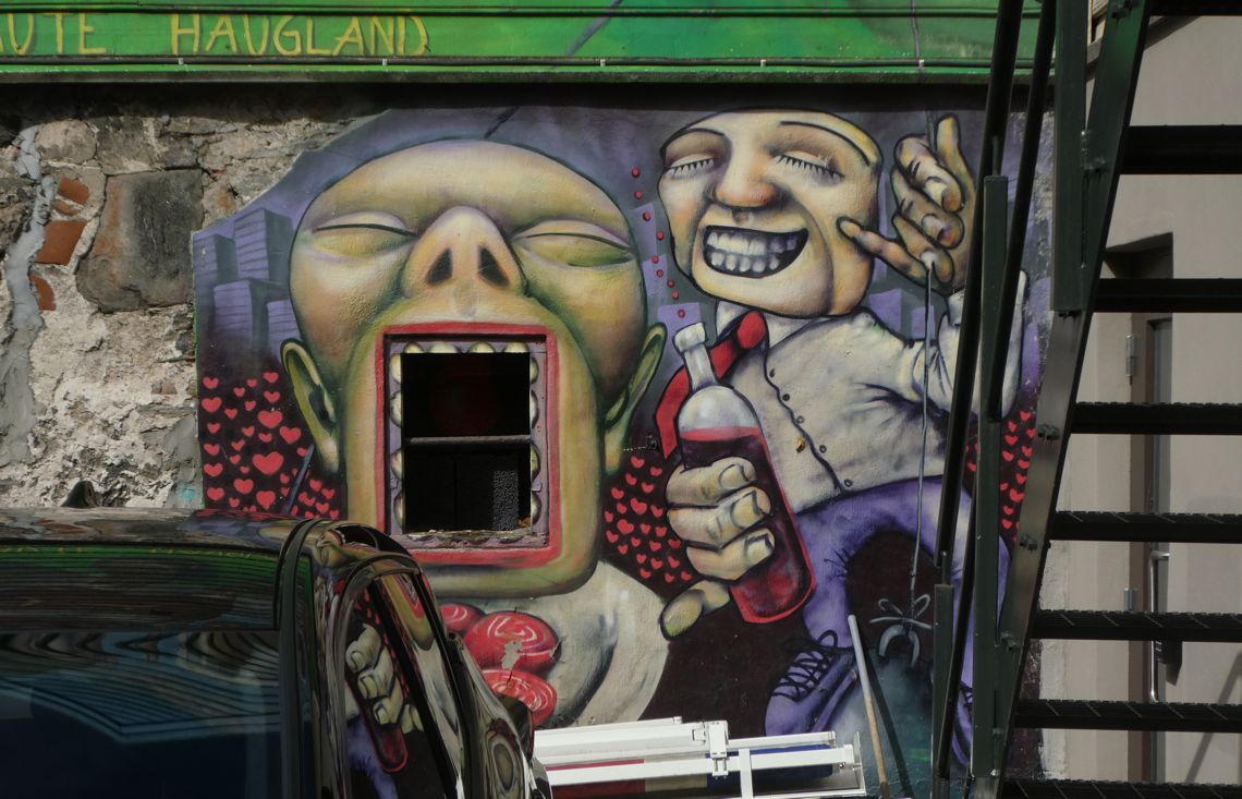 Angepeilt wird von uns zunächst einmal das einst ziemlich alternative Viertel, direkt beim Hafen, früher noch mit einer bunten Mischung aus Handwerkern, kleinen Cafés und Restaurants, etwas studentisch scheinender Szene, in recht alten, oft renovierungsbedürftigen Gebäuden, voller Graffitis, manchmal Schmierereien, aber oft sehr gekonnt. Auf dem Weg dorthin begegnen uns noch ein paar Überbleibsel aus der Graffiti-Zeit, die wir noch von früheren Aufenthalten kennen, dazu ein auffallendes Neues – Corona, irgendwie symbolisch das Drumherum, die Tür mit der Aufschrift „Sprinkler Stop-Ventil“ oder die Tür, die ins Nichts führt.