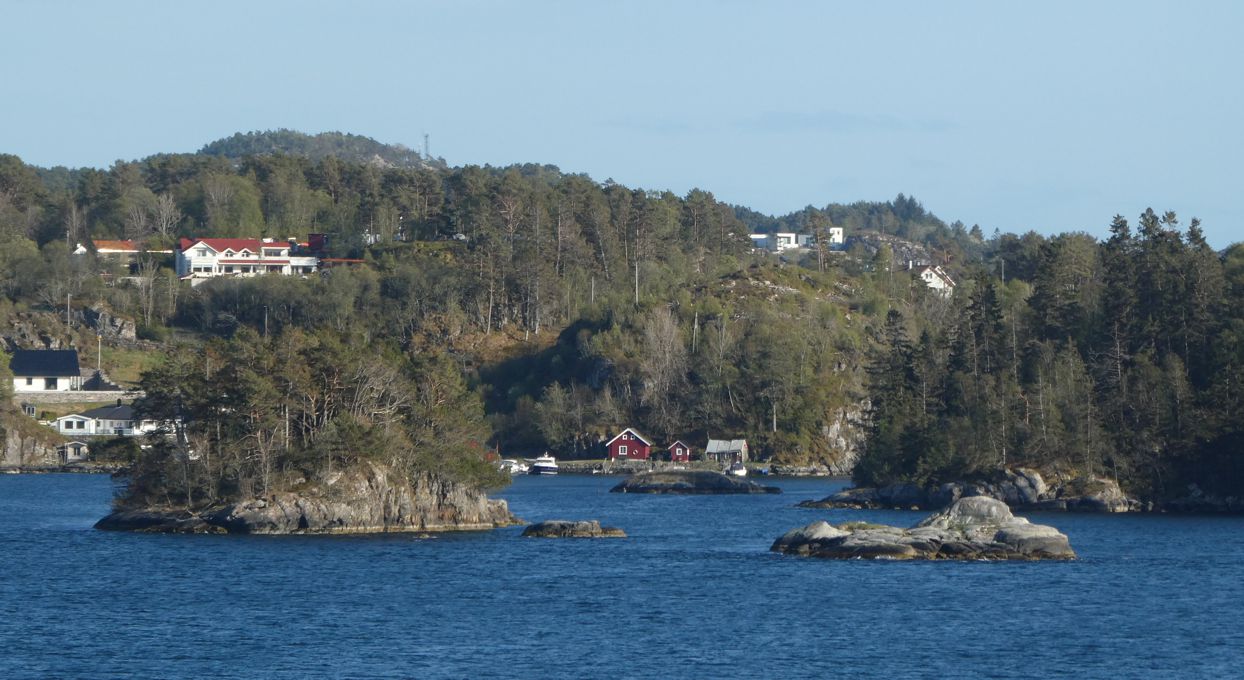 Heimreise. Es war der letzte Tag unserer Norwegenreise. Wir verabschieden uns aus Bergen, fahren bei schönstem Sonnenschein hinaus aus dem Fjord, vorbei an vielen kleinen Schäreninsteln.