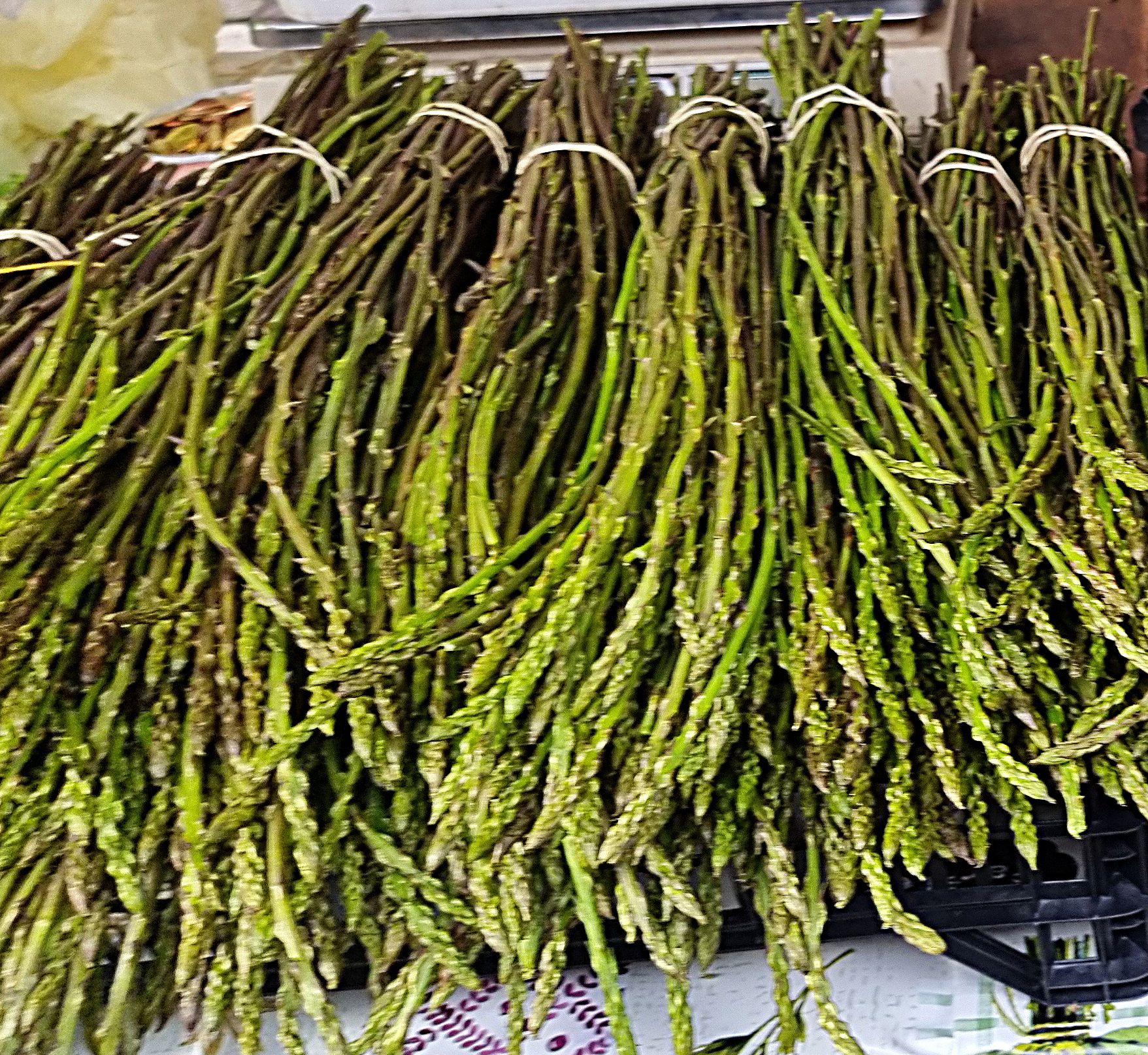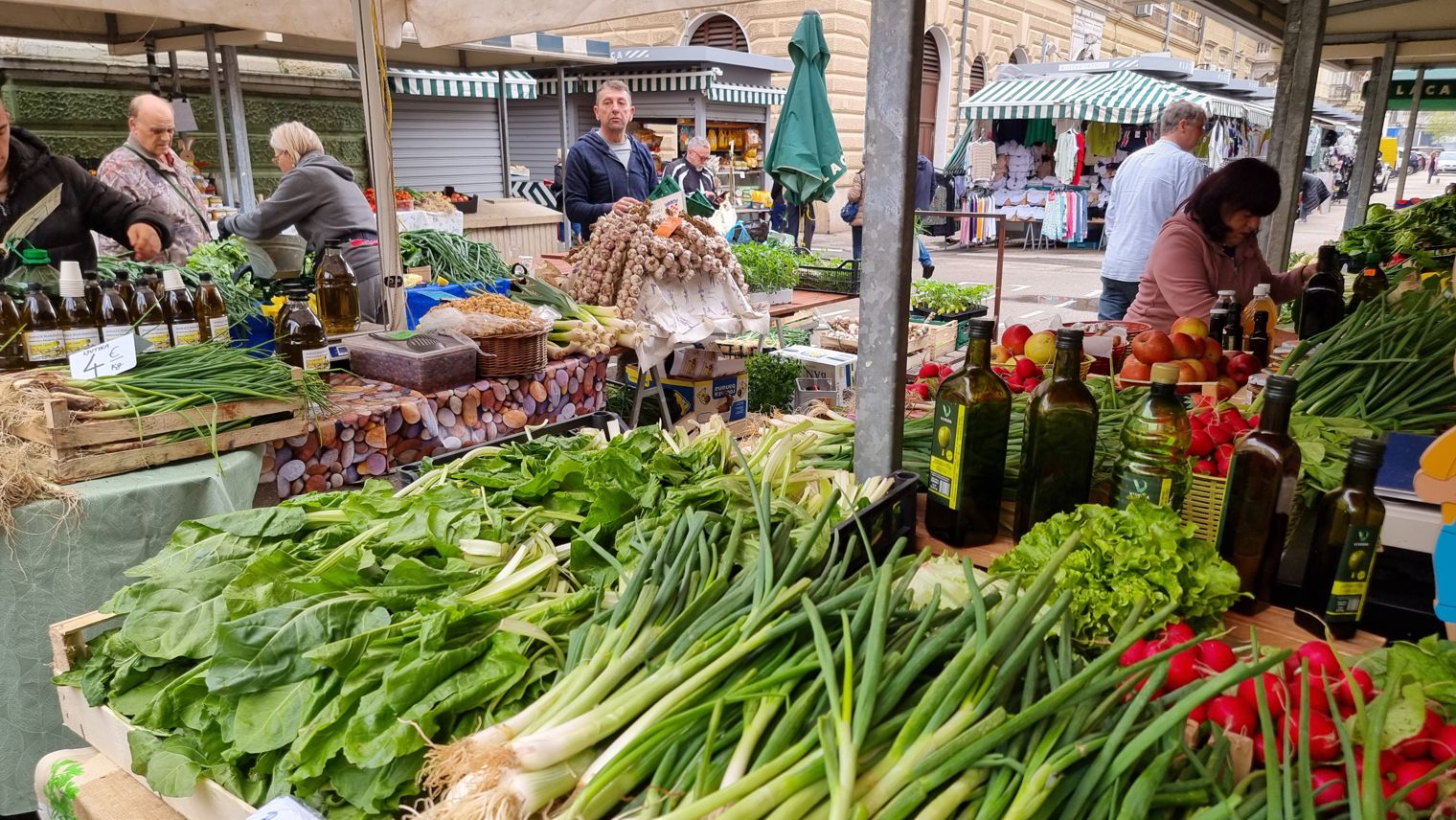 Vor der Halle ist der Bauernmarkt – ein Markt, wie man sich das vorstellt, und bei dem man ernsthaft ein wenig neidisch wird. Bei uns ist so etwas einfach kaum mehr zu finden. Gemüse, Salate, Kräuter, eben alles, was die Jahreszeit so hergibt, frisch vom Feld oder aus dem Gemüsegarten. Eine unglaubliche Auswahl an Gartenkräutern, eine Vielzahl verschiedener Salate, und zwar nicht nur die Standard-Zuchtsorten. Wilder Spargel, wilder Fenchel. Zucchinis verschiedener Farben und Größen, mit und ohne Blüte.