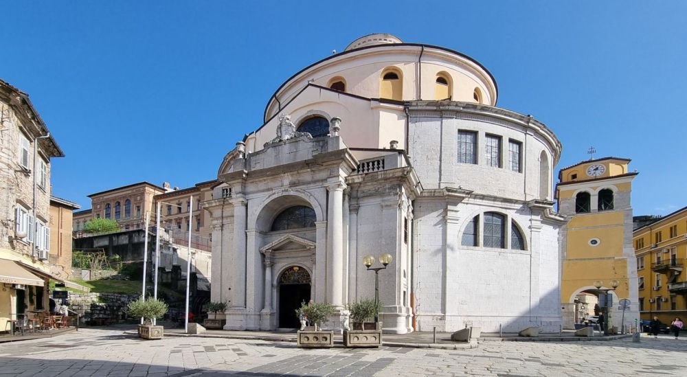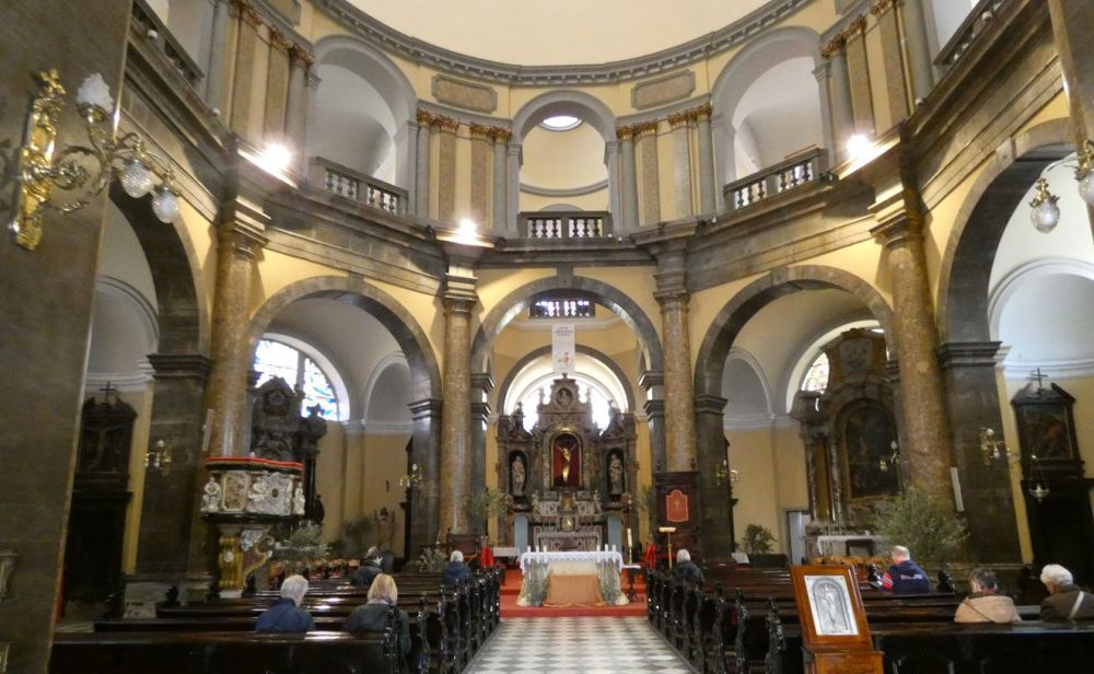 Der Bau dieser Barockkirche, ein Rundbau, wie man ihn selten zu sehen bekommt, wurde im frühen 17. Jahrhundert begonnen und zog sich über ein Jahrhundert hin, bis der jetzt sichtbare Stand erreicht war; verschiedene Bereiche sind heute noch nicht fertiggestellt.