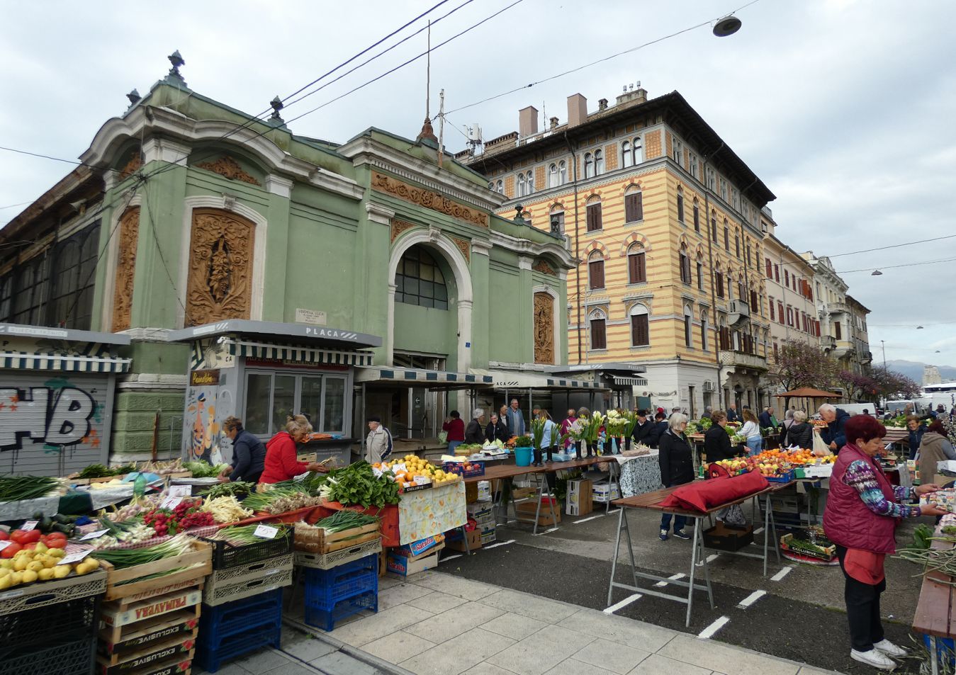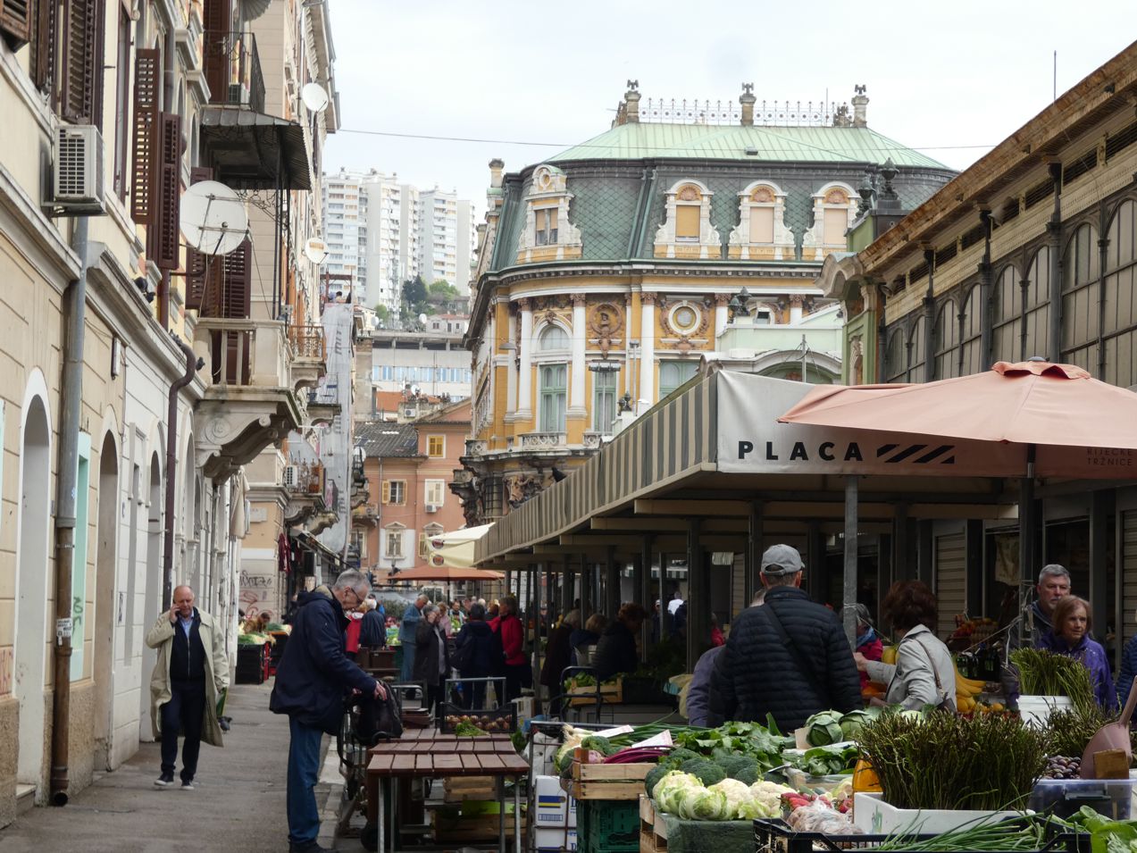 Infos über Rijeka haben wir nur im Schnellverfahren gesammelt; die Stadt stand ja nicht im „Fahrplan“. Große Sehenswürdigkeiten soll es nicht geben. Der Markt soll noch sehr traditionell sein; viele Fischer und Landwirte aus der Umgebung sollen hier ihre Produkte anbieten. Somit geht es auf einen Spaziergang vom Hafen in die Stadt, zum Markt – um ein wenig davon zu schnuppern, was das Alltagsleben in Rijeka so ausmacht. Bauernmarkt und Fischmarkt sind angesagt.