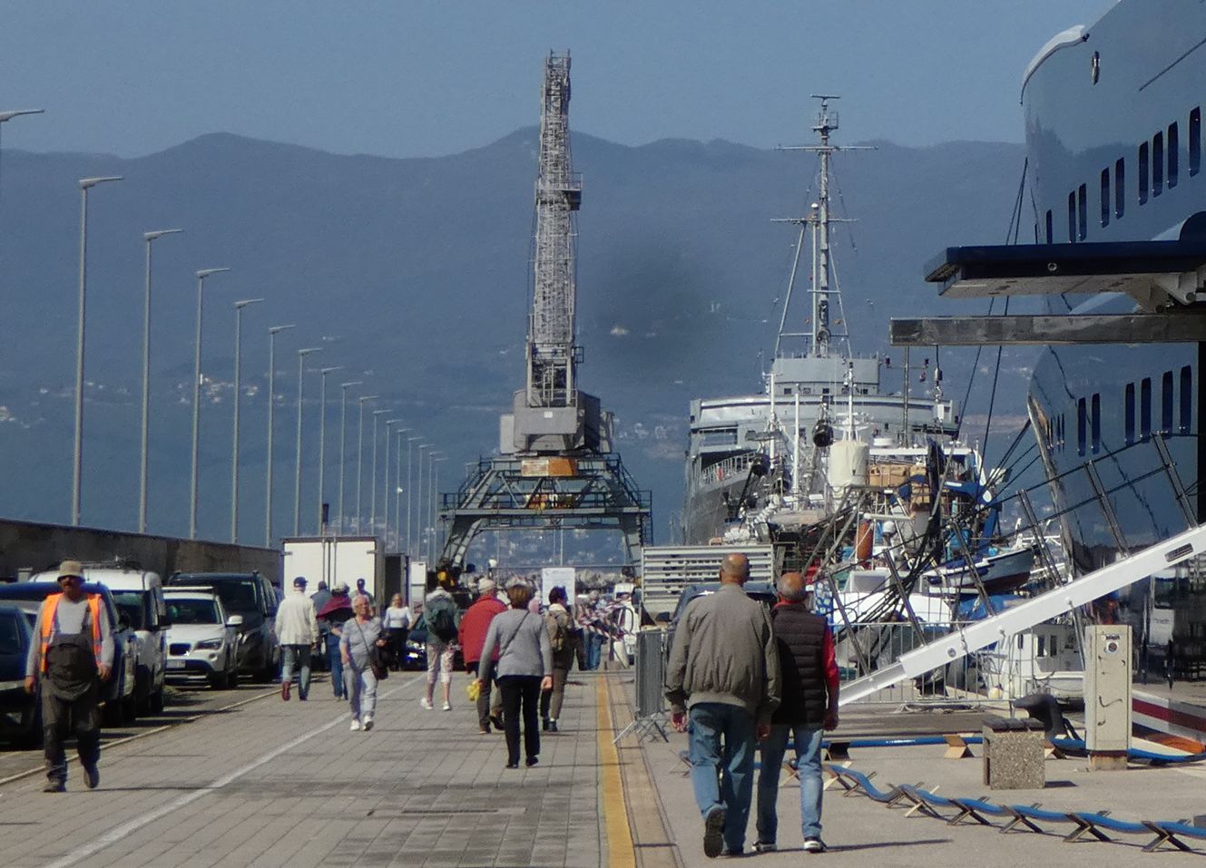 Eigentlich würde man am liebsten einen Großeinkauf machen. Aber was tun damit, schließlich darf man nichts aufs Schiff mitbringen und ist auf diesem eigentlich rundum versorgt. So ein Kreuzfahrtprogramm lässt nur kleinere Zukäufe zu, für Essen und Probieren unterwegs, und das Essen auf dem Schiff lässt man dann eben mal ausfallen. Die einzige Möglichkeit, wenn man „regional“ probieren möchte … Die Zeit, in der Kreuzfahrtanbieter auf lokale Produkte „frisch auf den Tisch“ zugriffen, ist ja längst überall vorbei. Also Mini-Einkauf, ein Stück luftgetrocknete Salami, ein kleiner Brocken Ziegenkäse, eine Schale Erdbeeren, eine handvoll Walnüsse und eine kleine Tüte getrocknete Mini-Feigen.