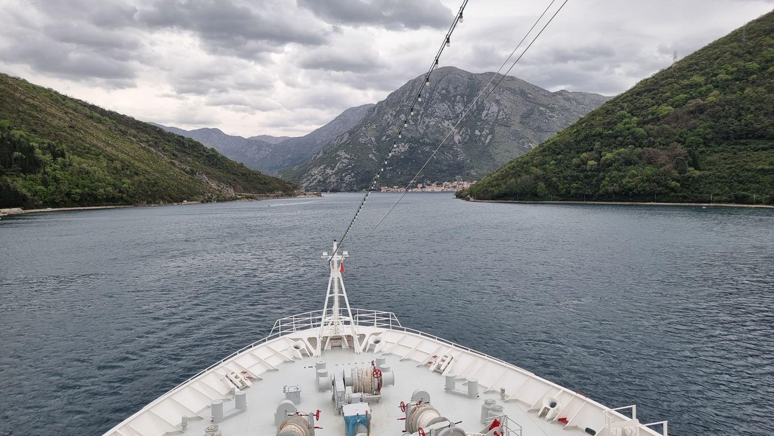 Entlang der kroatischen Küste ging es in einer stürmischen Nacht, in der uns die kleine MS Hamburg demonstrierte, was bei einem Schiff stampfen und rollen heißt, nach Montenegro. Das Wetter wird gnädiger. Die See ist noch rauh, aber das Schaukeln lässt im Laufe des Vormittags doch nach. Die Fahrt führt hinein in die Bucht von Kotor, eher ein verzweigtes Netz von Meeresarmen, gerne auch als einziges oder längstes Fjord des Mittelmeeres bezeichnet.