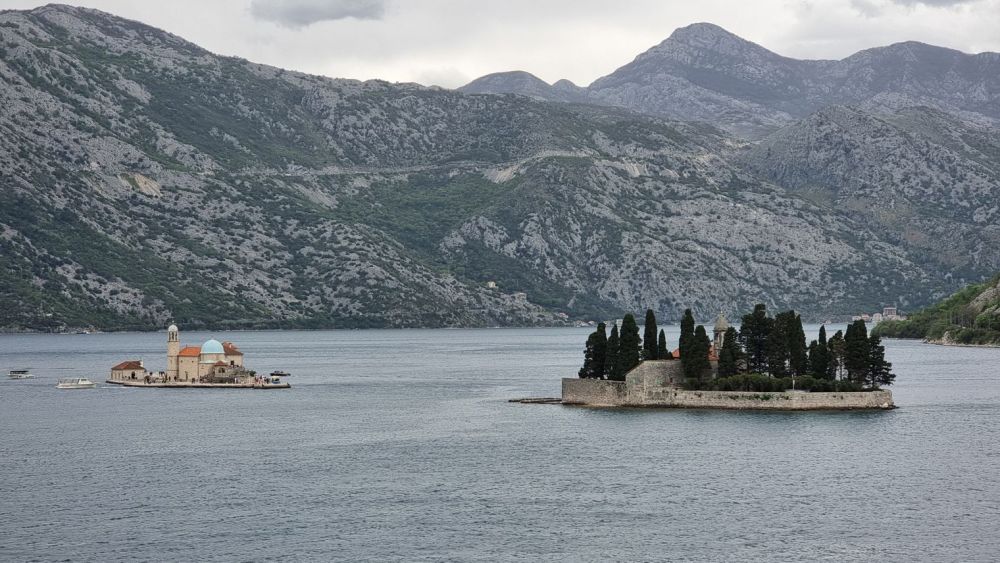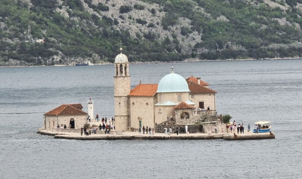 Auf einer künstlichen Insel, die durch das Aufschütten von Steinen und ausgedienten Schiffen entstand, steht die kleine Barockkirche Gospa od Škrpjela, übersetzt „Unsere Liebe Frau vom Felsen“, die hier bereits 1632 gebaut wurde. Wer genügend Zeit hat, kann diese Insel per Boot besuchen. Wir machen diesbezüglich schon aufgrund der Wetterlage keinen Versuch, von Kotor aus da hin zu kommen.