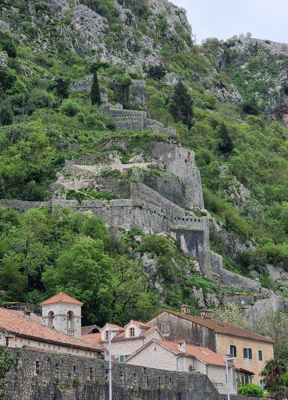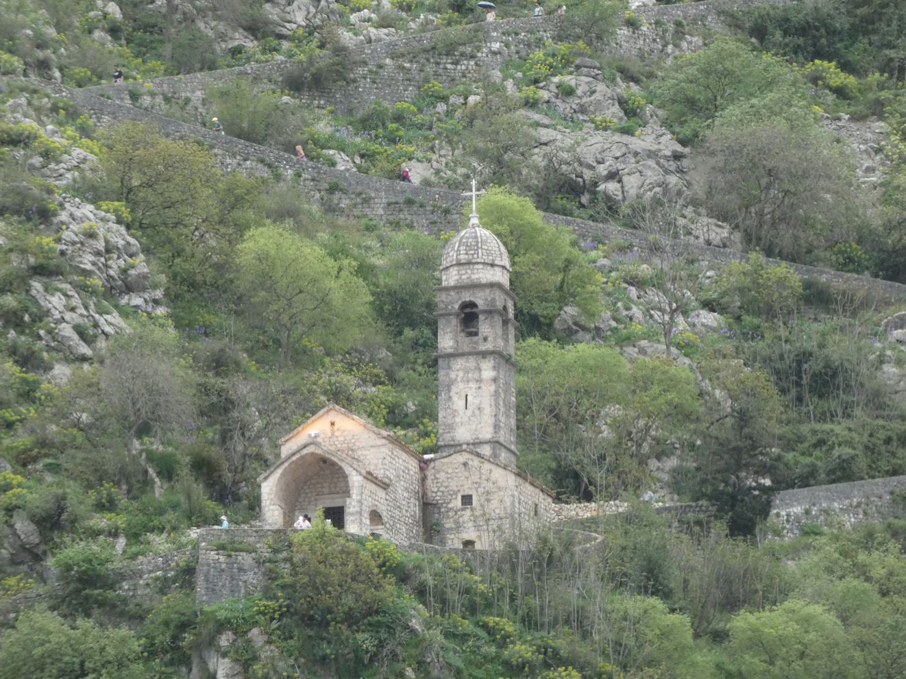 Entlang der teilweise zerfallenen Stadtmauer beginnt ein steiler Weg hinauf zu einer weit oben auf dem Berg, noch innerhalb der alten Festungsanlage liegenden kleinen Kirche, die der Gesundheit gewidmet ist – gebaut im 17. Jahrhundert als Dank für das Ende der Pestepedemie. Eigentlich sollte man sich den Aufstieg zur Kirche und die Aussicht auf die Bucht von hoch oben vom Berg nicht entgehen lassen – aber wir ersparen uns bei Regenwetter und schlechter Sicht den beschwerlichen Weg auf 260 Meter Höhe, mit über 1.300 Stufen.
