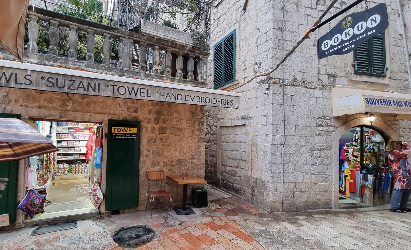 Wir liegen weit draußen vor der Stadt; etwa zwanzig Minuten dauert die Fahrt mit dem Tenderboot. Kotor zeigt sich aus der Nähe noch mehr wehrhaft, mit wenigen Toren und Durchlässen, entlang der Stadtmauer Marktnischen, in denen lokale Produkte angeboten werden.